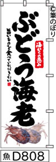 「のぼり【ぶどう海老 白地に黒】手書き筆文字[d808](商標登録番号6807113)『受注生産』」