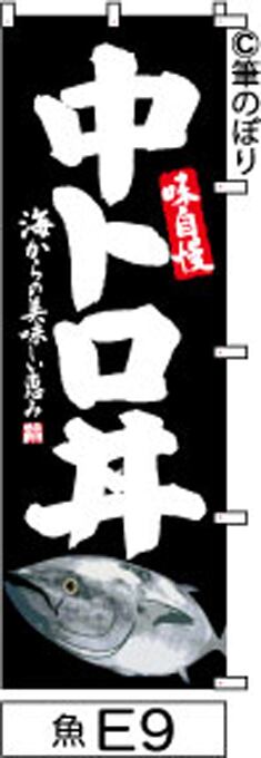 【中トロ丼】のぼり旗|送料無料 目立つ手書き筆文字[e009]黒白抜き