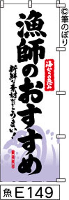 【漁師のおすすめ】のぼり旗|送料無料 目立つ手書き筆文字[e149]白地に薄紫波黒