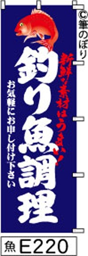 【釣り魚調理】のぼり旗|送料無料 目立つ手書き筆文字[e220]紺白抜き