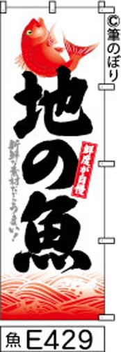 【地の魚】のぼり旗|送料無料 目立つ手書き筆文字[e429]白地に赤波柄黒