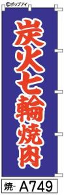 商品名:のぼり【炭火七輪焼肉】紺に赤の筆文字[焼A749](商標登録番号6807113)