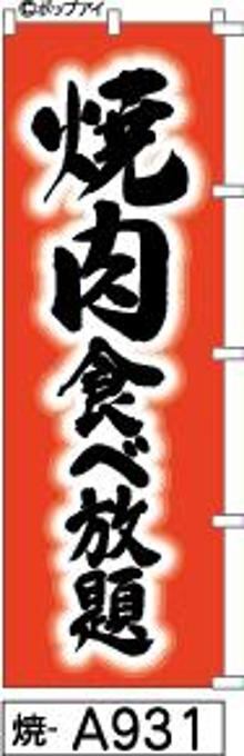 【焼肉食べ放題】のぼり旗|送料無料 目立つ手書き筆文字[a931]赤に黒