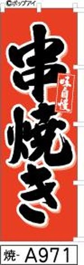 【串焼き】のぼり旗|送料無料 目立つ手書き筆文字[a971]赤に黒