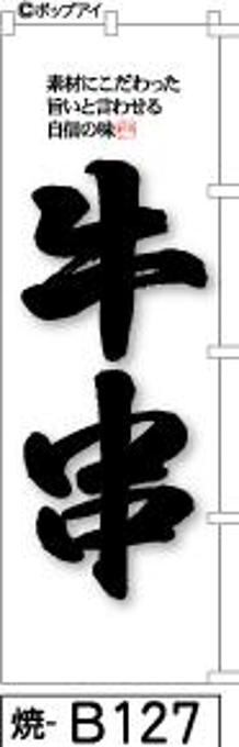 「のぼり【牛串】白に黒の筆文字[焼B127](商標登録番号6807113)」
