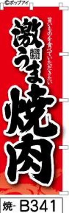 「のぼり【焼肉】赤に黒の筆文字[焼B341](商標登録番号6807113)は、焼肉をテーマにしたインパクトのあるのぼり旗です!