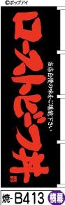 「のぼり横幕【ローストビーフ丼】黒に赤の筆文字[焼B413](商標登録番号6807113)」