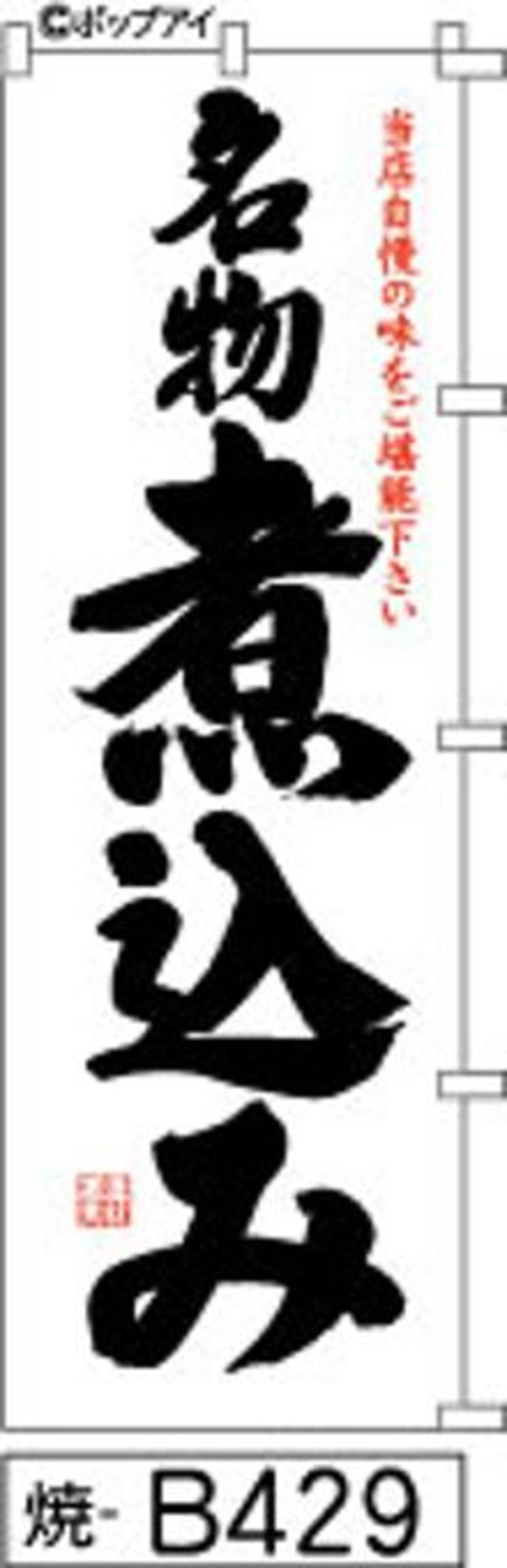 「 のぼり 【煮込み】白に黒の筆文字[焼B429] 商標登録番号6807113」