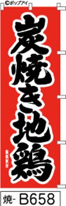 「のぼり【炭焼き地鶏】赤地に黒の筆文字[焼B658](商標登録番号6807113)」