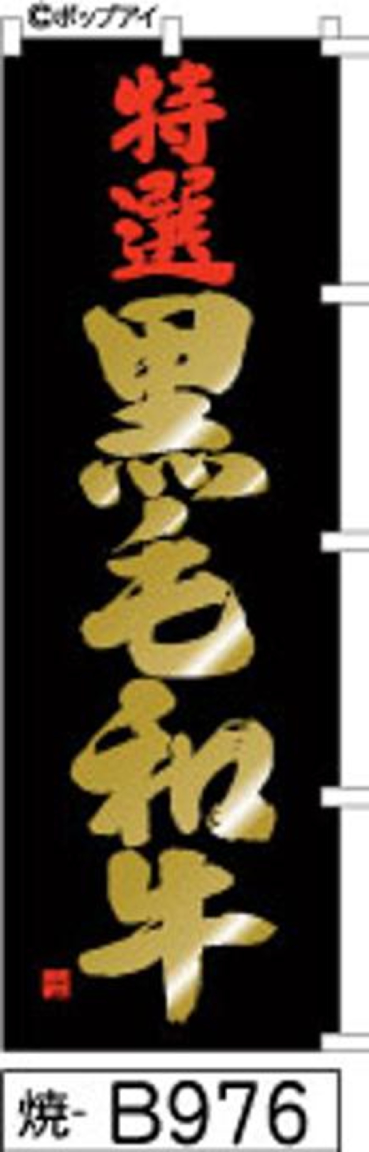 「のぼり【特選黒毛和牛】黒に金の極太筆文字と赤がカッコ良く目立つ[焼B976]」