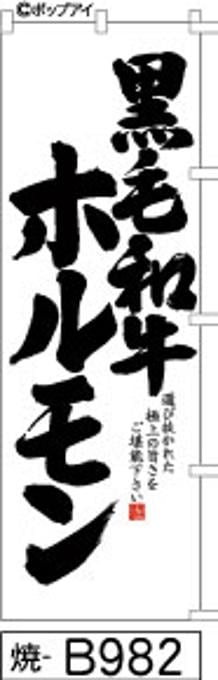 【黒毛和牛ホルモン】のぼり旗|送料無料 目立つ手書き筆文字[b982]白地に黒