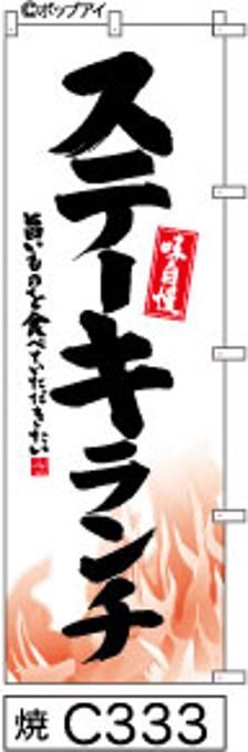 「のぼり【ステーキランチ】白地に炎黒の手書き筆文字[焼C333](商標登録番号6807113)」