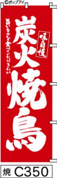 「のぼり【炭火焼鳥】赤に白抜き手書き筆文字[焼C350](商標登録番号6807113)」