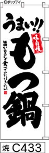 「のぼり【もつ鍋】白地に黒の手書き筆文字[焼C433](商標登録番号6807113)