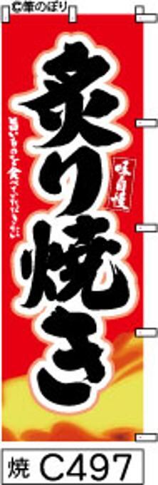 【炙り焼き】のぼり旗|送料無料 目立つ手書き筆文字[c497]赤に炎黒