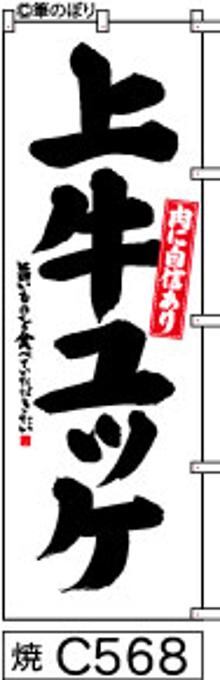 【上牛ユッケ】のぼり旗|送料無料 目立つ手書き筆文字[c568]白地に黒