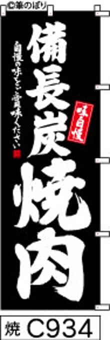 のぼり【備長炭焼肉】黒の白抜き手書き筆文字[焼C934](商標登録番号6807113)