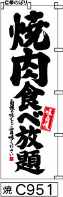「のぼり【焼肉食べ放題】白地に黒の手書き筆文字[焼C951](商標登録番号6807113)」