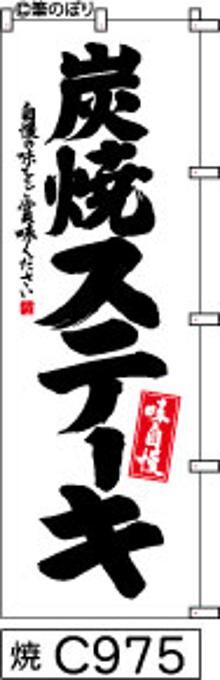 「のぼり【炭焼きステーキ】白地に黒の手書き筆文字[焼C975](商標登録番号6807113)」