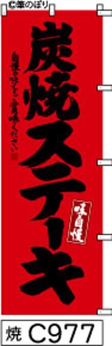 「のぼり【炭焼きステーキ】赤に黒の手書き筆文字[焼C977](商標登録番号6807113)」