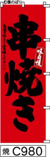 【串焼き】のぼり旗|送料無料 目立つ手書き筆文字[c980]赤に黒