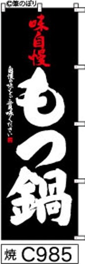 【もつ鍋】のぼり旗|送料無料 目立つ手書き筆文字[c985]黒白抜き