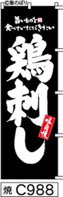 「のぼり【鶏刺し】黒の白抜き手書き筆文字[焼C988](商標登録番号6807113)」