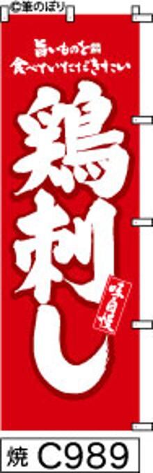 「のぼり【鶏刺し】濃赤の白抜き手書き筆文字[焼C989](商標登録番号6807113)」