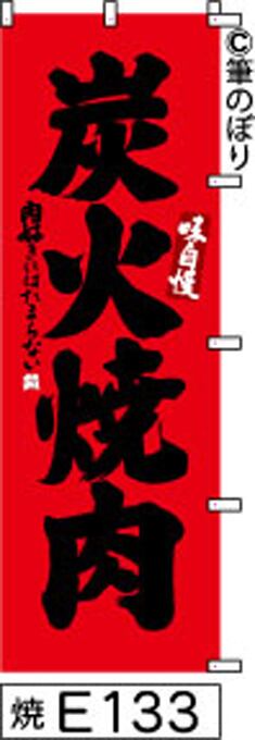 【炭火焼肉】のぼり旗|送料無料 目立つ手書き筆文字[e133]赤に黒