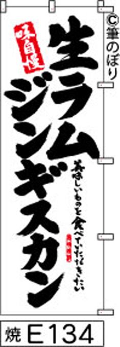 【生ラムジンギスカン】のぼり旗|送料無料 目立つ手書き筆文字[e134]白地に黒
