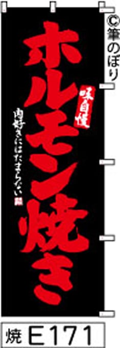 【ホルモン焼き】のぼり旗|送料無料 目立つ手書き筆文字[e171]黒に赤