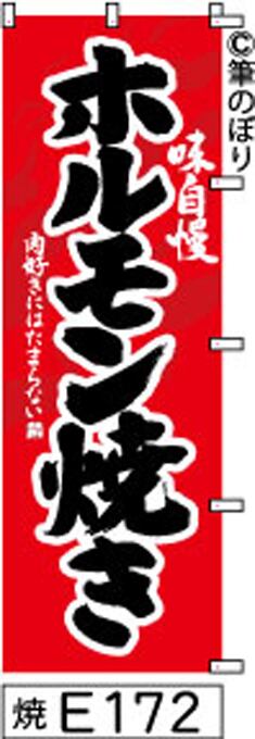 【ホルモン焼き】のぼり旗|送料無料 目立つ手書き筆文字[e172]赤に黒