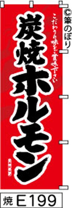 【炭焼きホルモン】のぼり旗|送料無料 目立つ手書き筆文字[e199]赤に黒