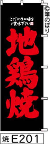 【地鶏焼き】のぼり旗|送料無料 目立つ手書き筆文字[e201]黒赤
