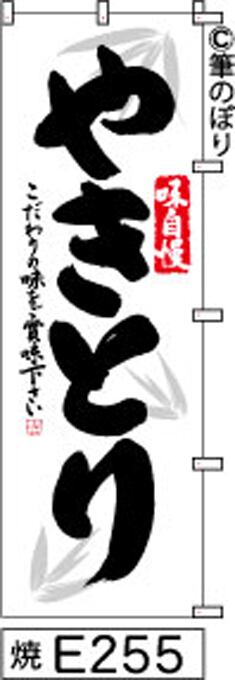 【やきとり】のぼり旗|送料無料 目立つ手書き筆文字[e255]白地に黒