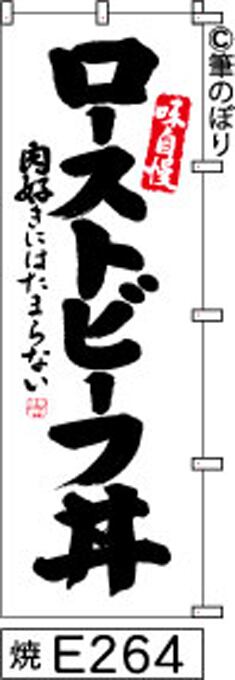 【ローストビーフ丼】のぼり旗|送料無料 目立つ手書き筆文字[e264]白地に黒
