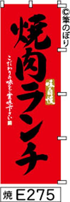 【焼肉ランチ】のぼり旗|送料無料 目立つ手書き筆文字[e275]赤に黒