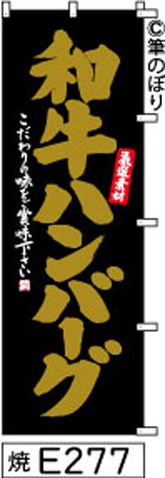 【和牛ハンバーグ】のぼり旗|送料無料 目立つ手書き筆文字[e277]黒に金