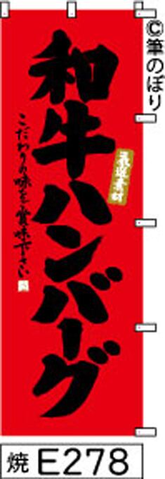 【和牛ハンバーグ】のぼり旗|送料無料 目立つ手書き筆文字[e278]赤に黒