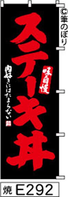 【ステーキ丼】のぼり旗|送料無料 目立つ手書き筆文字[e292]黒に赤