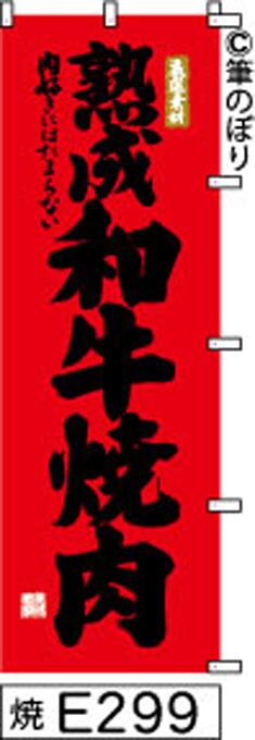 【熟成和牛焼肉】のぼり旗|送料無料 目立つ手書き筆文字[e299]赤に黒