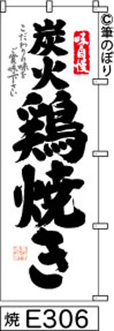【炭火鶏焼き】のぼり旗|送料無料 目立つ手書き筆文字[e306]白地に黒