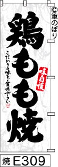 【鶏もも焼き】のぼり旗|送料無料 目立つ手書き筆文字[e309]白地に和紙柄黒