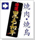 焼肉屋さんのオリジナルのぼり旗で手書きの筆文字がカッコよく目立ちます。焼肉ランチ食べ放題のタイトル。