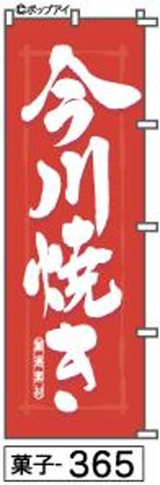 「のぼり【今川焼き】[菓子365] 商標登録番号6807113 は、目を引く鮮やかな赤色に、白抜きの筆文字で書かれたタイトルが特徴です!