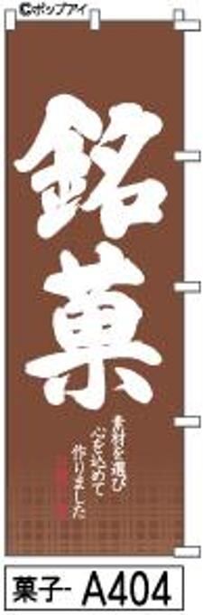 深みのある焦げ茶の色合いに、筆で書かれた味わい深い文字が高級感を醸し出す「のぼり【銘菓】[菓子A404]」。