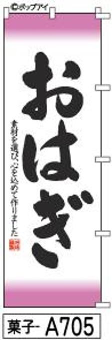 【おはぎ】のぼり旗|送料無料 目立つ手書き筆文字[a705]白地に薄紫上下黒