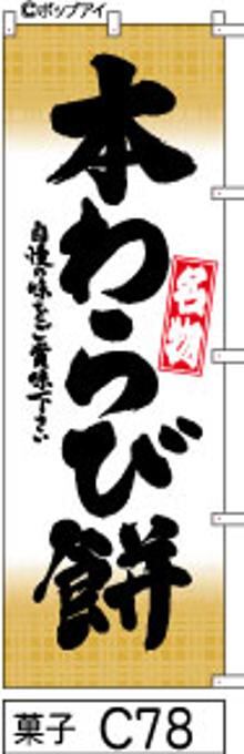 【本わらび餅】のぼり旗|送料無料 目立つ手書き筆文字[c078]薄茶和柄に黒