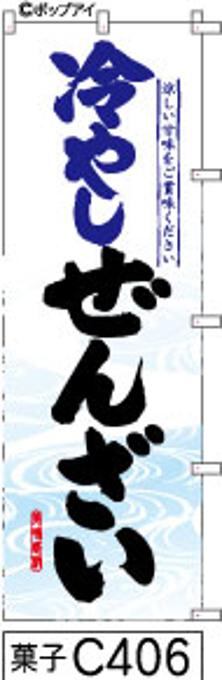 【冷やしぜんざい】のぼり旗|送料無料 目立つ手書き筆文字[c406]白地に水色和模様