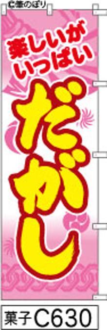 【だがし】のぼり旗|送料無料 目立つ手書き筆文字[c630]ピンクに黄色